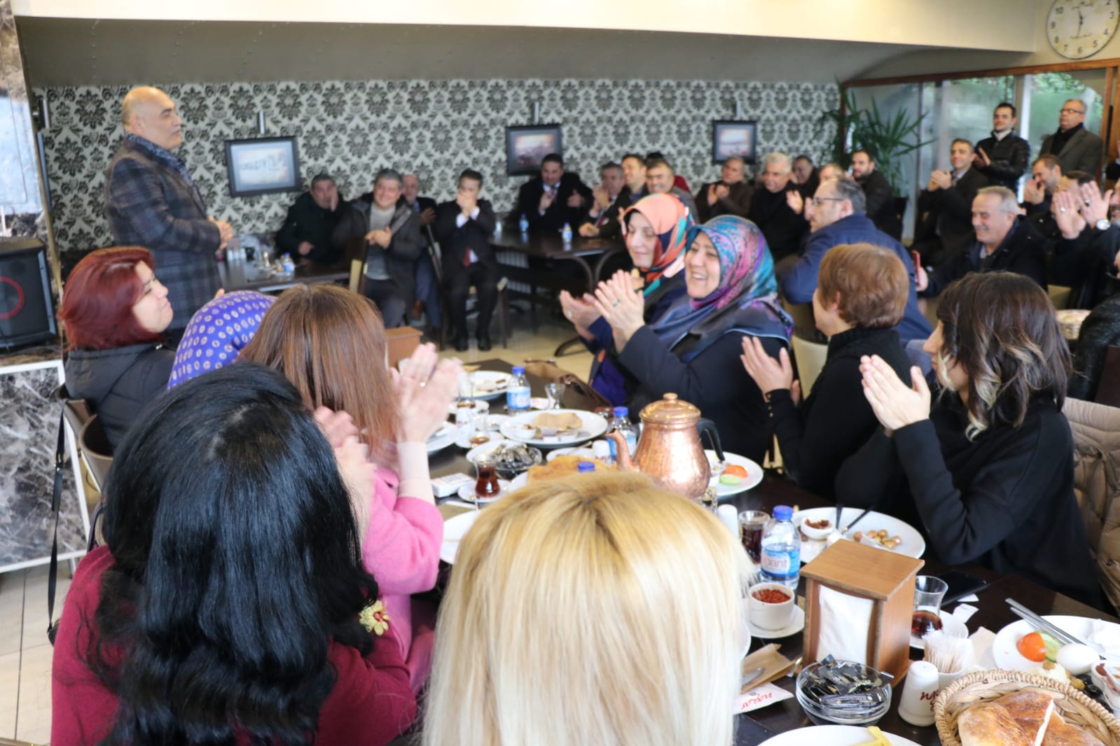 Nazar Kebap da düzenlenen kahvaltılı toplantıya Belediye Meclis Üyesi Adayları ile İlçe Yönetim Kurulu Üyeleri, İl Genel Meclisi Üyesi adayları, Gençlik ve Kadın Kolları Başkanları katıldı.