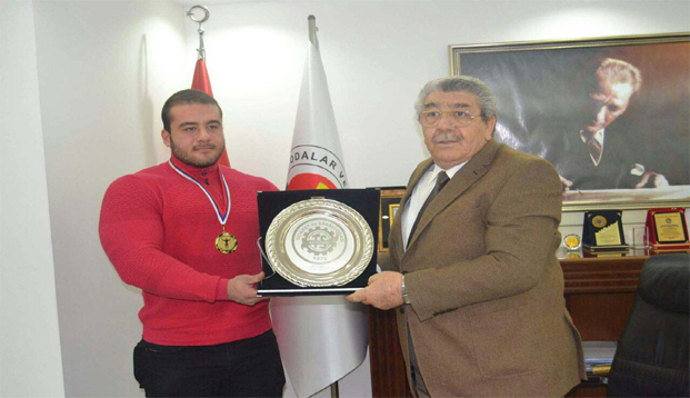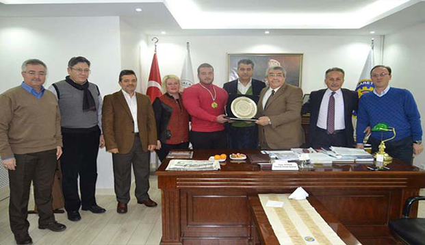 Ereğli Ticaret ve Sanayi Odası Başkanı Yaşar Tetiker ve Yönetim Kurul Üyeleri Dünya Vücut Geliştirme Şampiyonası ikincisi olan Baran Demirçini plaketle ödüllendirdi.