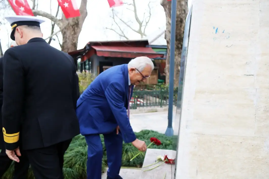 Kent protokolü, Gazi Alemdar Destanı’nın 105. yılında ilk deniz şehidi Recep Kahya’nın İnönü Parkı’ndaki anıtına karanfil bırakarak dua etti.