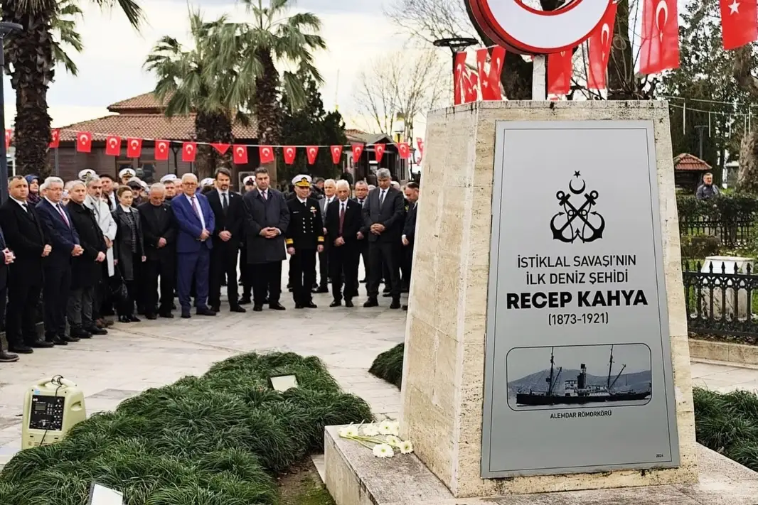 İstiklal Savaşı’nın ilk ve tek deniz zaferinin 105. yılı dolayısıyla Karadeniz Ereğli’de düzenlenen törende, ilk deniz şehidi Recep Kahya için İnönü Parkı’ndaki anıta karanfiller bırakıldı, dualar edildi.İstiklal Savaşı’nın ilk ve tek deniz zaferi olarak tarihe geçen Gazi Alemdar Destanı’nın 105. yılı kapsamında Karadeniz Ereğli’de anma programı düzenlendi. Kent protokolünün katılımıyla İnönü Parkı’nda bulunan ve ilk deniz şehidi Recep Kahya adına yaptırılan anıt önünde gerçekleştirilen törende karanfiller bırakıldı, dualar okundu.