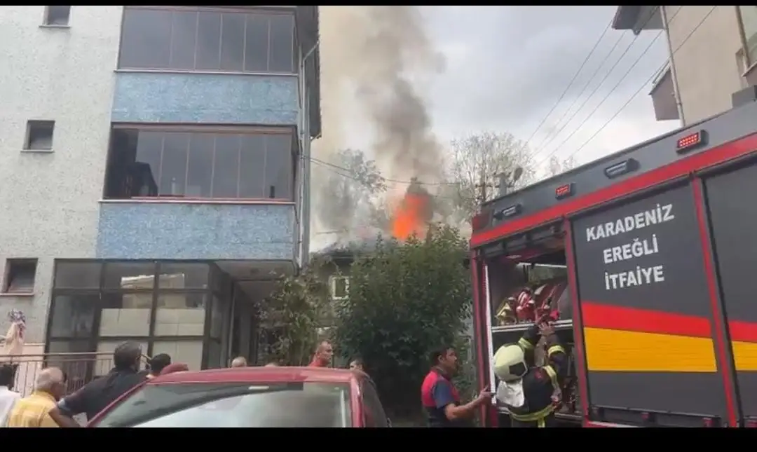 Karadeniz Ereğli ilçesinde üç katlı binanın çatı katında çıkan yangın korku dolu anlar yaşattı. Olay yerine itfaiye ve sağlık ekipleri sevk edildi.