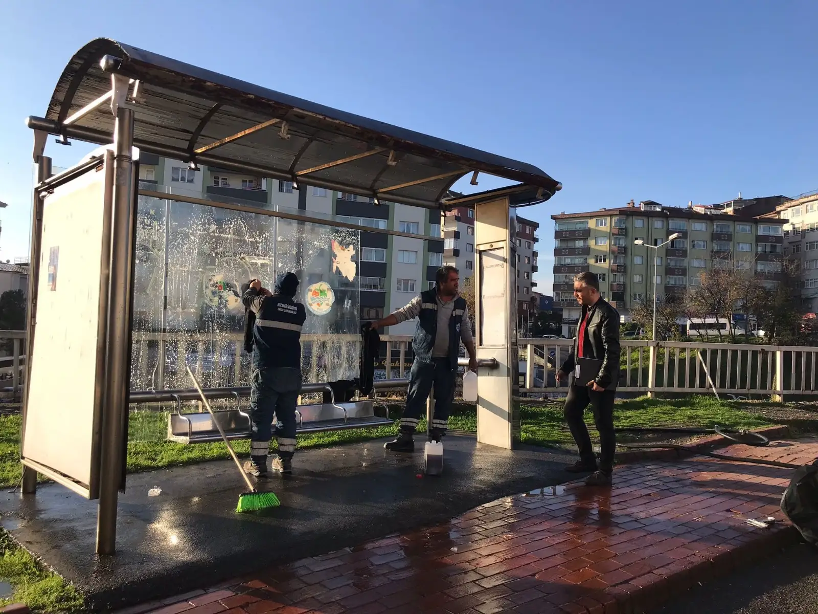 Bu kapsamda, kent içi 650 kilometrelik yol ağında bulunan 285 toplu taşıma durağında detaylı temizlik yaptı. Durak camları, oturma alanları ve metal yüzeyler özenle temizlenirken, çevre düzenlemeleri de yapılarak vatandaşların daha sağlıklı ve konforlu bir bekleme alanına kavuşması sağlandı.