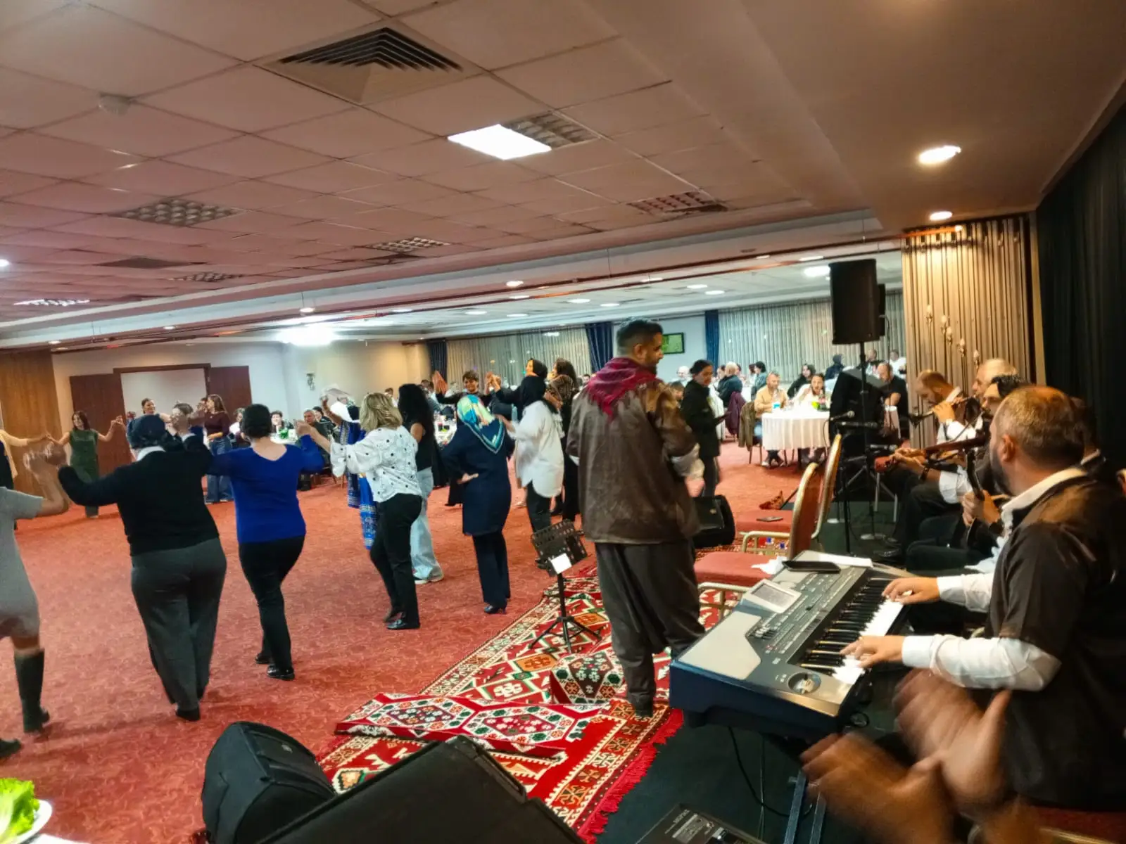 Sevilen ses sanatçısı İbrahim Gözükara ve ekibi unutulmaz bir geceye imza attı. Yöresel türkülerle geceye damga vuran Gözükara, davetlilere duygusal ve neşeli anlar yaşattı. Yoğun katılımın olduğu gecede, İbrahim Gözükara ve ekibi; “Urfalı Sevmiş”, “Dost Değil”, “Urfa’nın Etrafı Dumanlı Dağlar” ve Merdo” gibi halk müziğinin sevilen eserlerini canlı olarak seslendirdi. Katılımcılar, sıra gecesinin geleneksel atmosferinde eğlenceli bir akşam geçirirken, çiğ köfte ve ikramlar eşliğinde dinlenen türküler, salonda coşkulu alkışlarla karşılandı. Alevli davul gösterisi ise görülmeye değerdi.