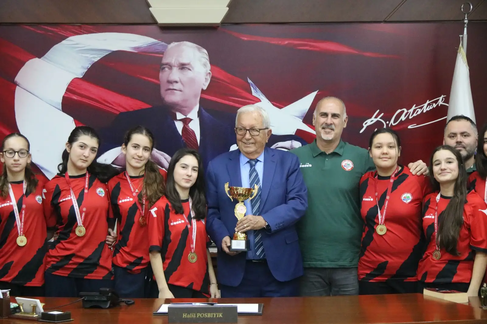 Bölgemizi temsil eden tek kulüp basketbol takımı olan ve Zonguldak’ta lig bulunmadığı için U14 Bolu Basketbol Ligi’ne katılan Kdz. Ereğli Belediyespor Kız Basketbol Takımı, Bolu’da kazandıkları şampiyonluk kupasıyla birlikte Kdz. Ereğli Belediye Başkanı Halil Posbıyık’ı makamında ziyaret etti.