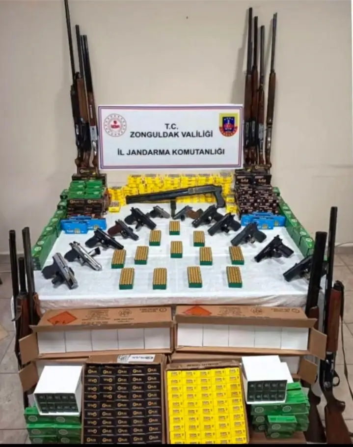 Zonguldak İl Jandarma Komutanlığınca, silah ve mühimmat kaçakçılığına yönelik Çaycuma ilçesi mülki sınırları içerisinde, Adli Makamlardan alınan arama kararına istinaden (7) şüpheli şahsa ait (9) ayrı adreste yapılan aramada;